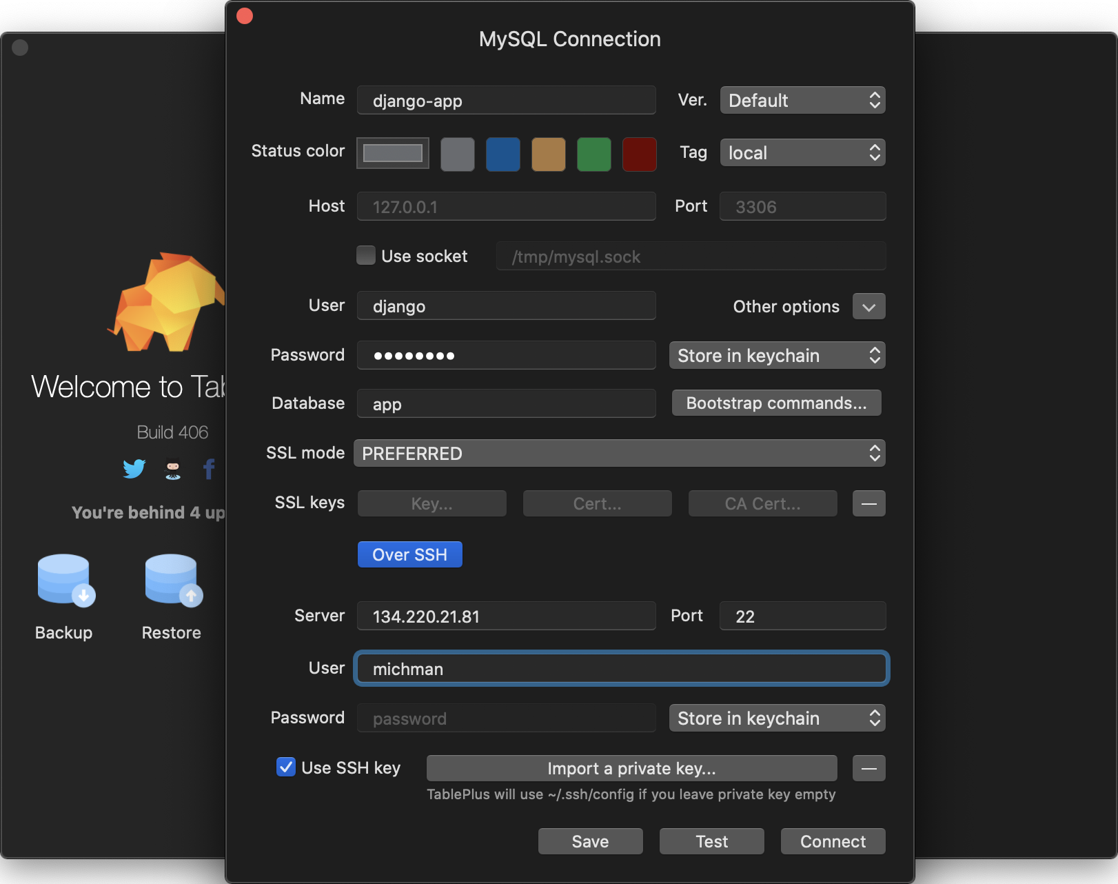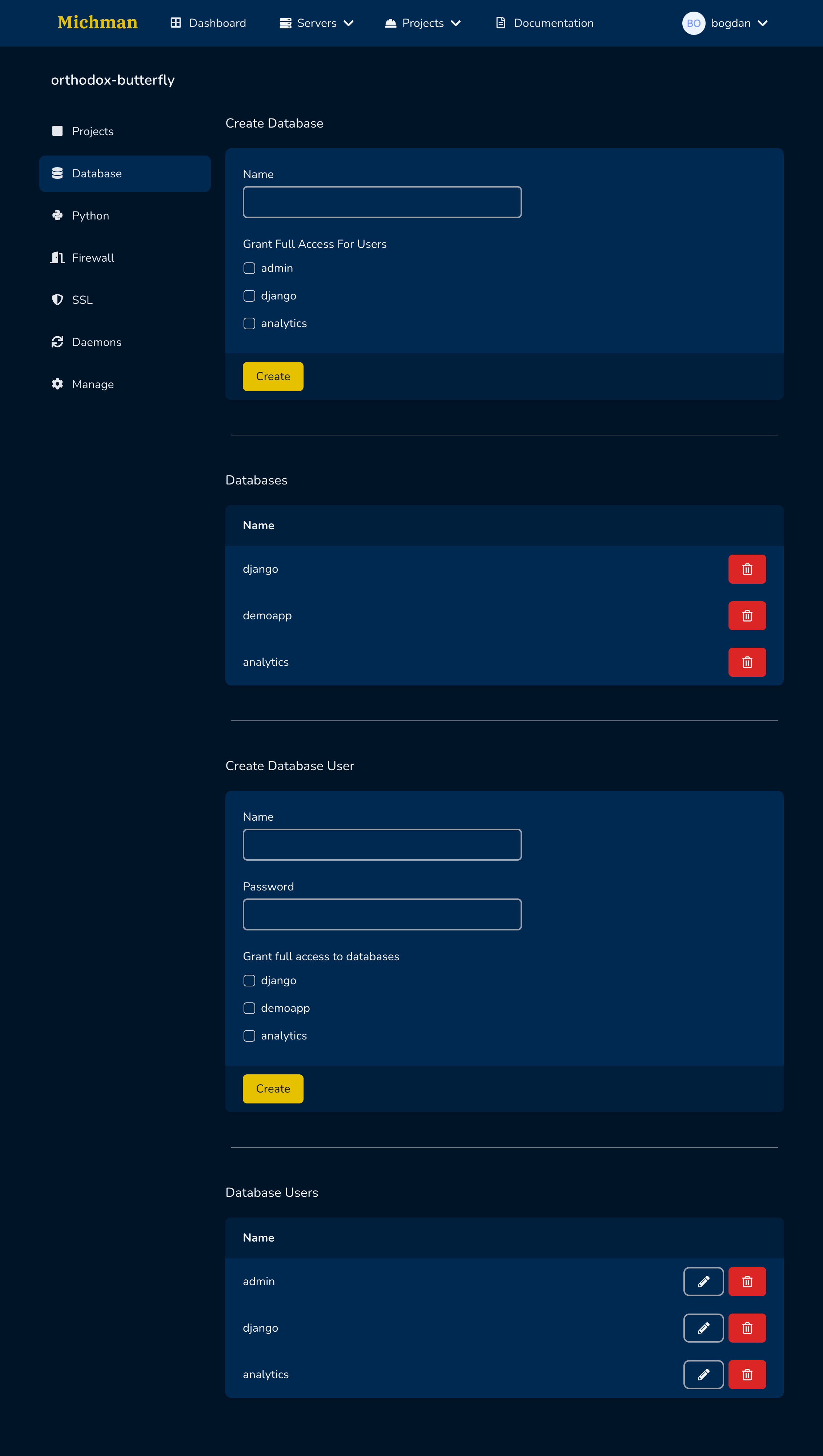 With Michman your application servers come with MySQL installed and configured for you, so your project can start using it right away.